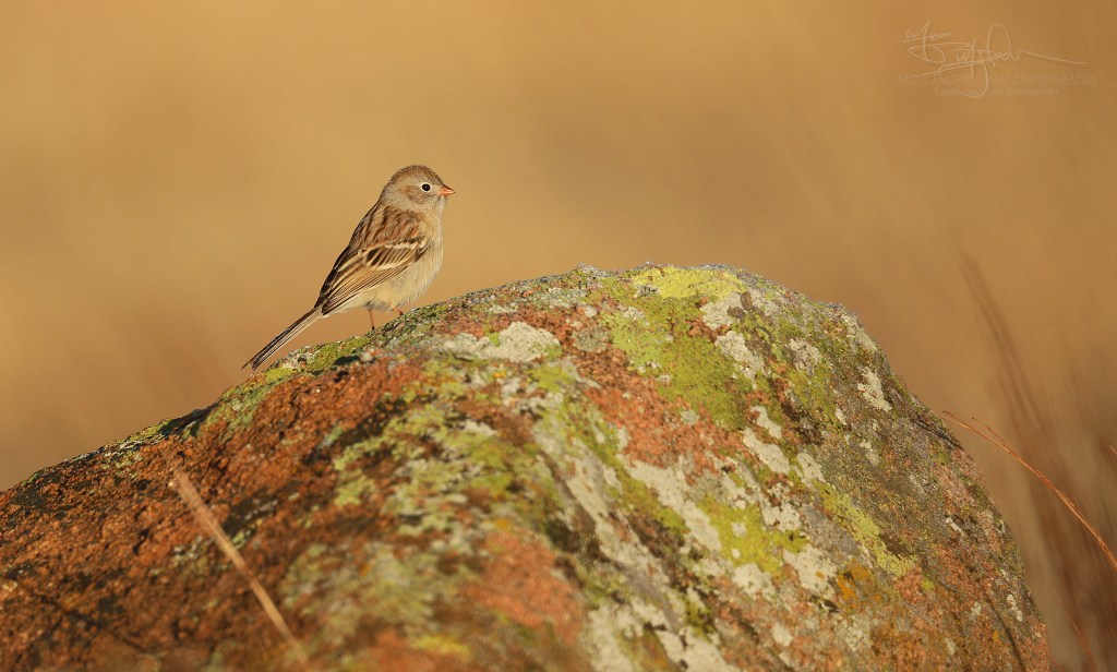 Immediately upon stepping from the tent into the brisk morning air I could see and hear dozens of birds. Small flocks moved through the brush and boulders. Most abundant were Field Sparrows (Spizella pusilla). Though I saw many of these in the snow the day prior, I was never presented with a good photo opportunity, so I was happy to get the chance to capture a few frames on our last morning in the area.