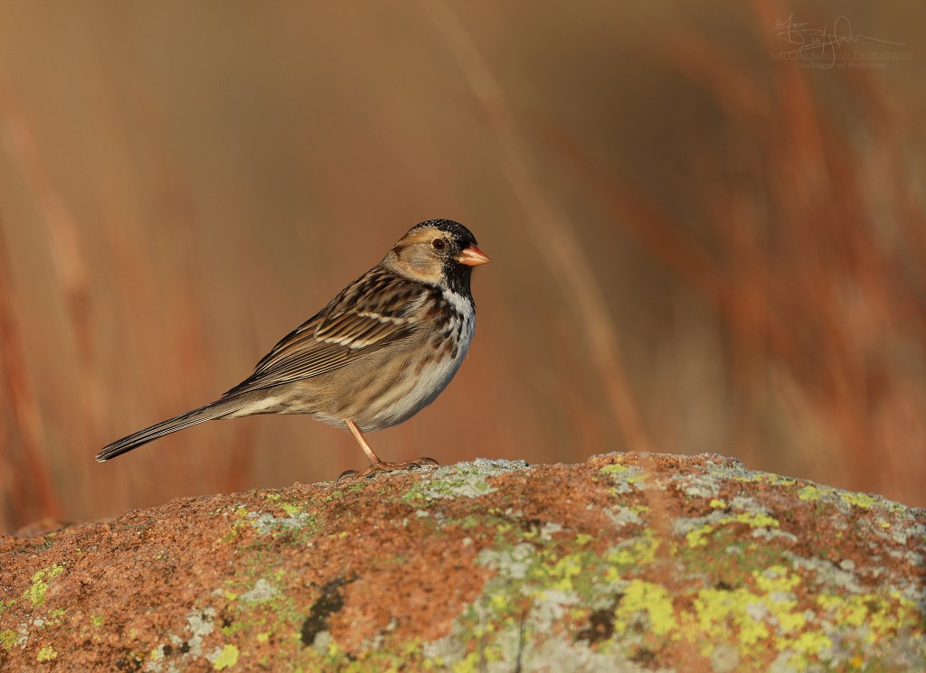 I was having trouble deciding which sparrow to focus on when a group of chunky songbirds flew into a leafless shrub not twenty feet from me. Harris’s Sparrows (Zonotrichia querula)! It was a species that both James and I were really hoping to have the opportunity to photograph this trip, and they were giving me some incredible photo ops. As my shutter clicked, I found myself wanting to reach out and high five James. But he wasn’t with me, and my heart sank a little knowing how badly he wanted this type of opportunity.
