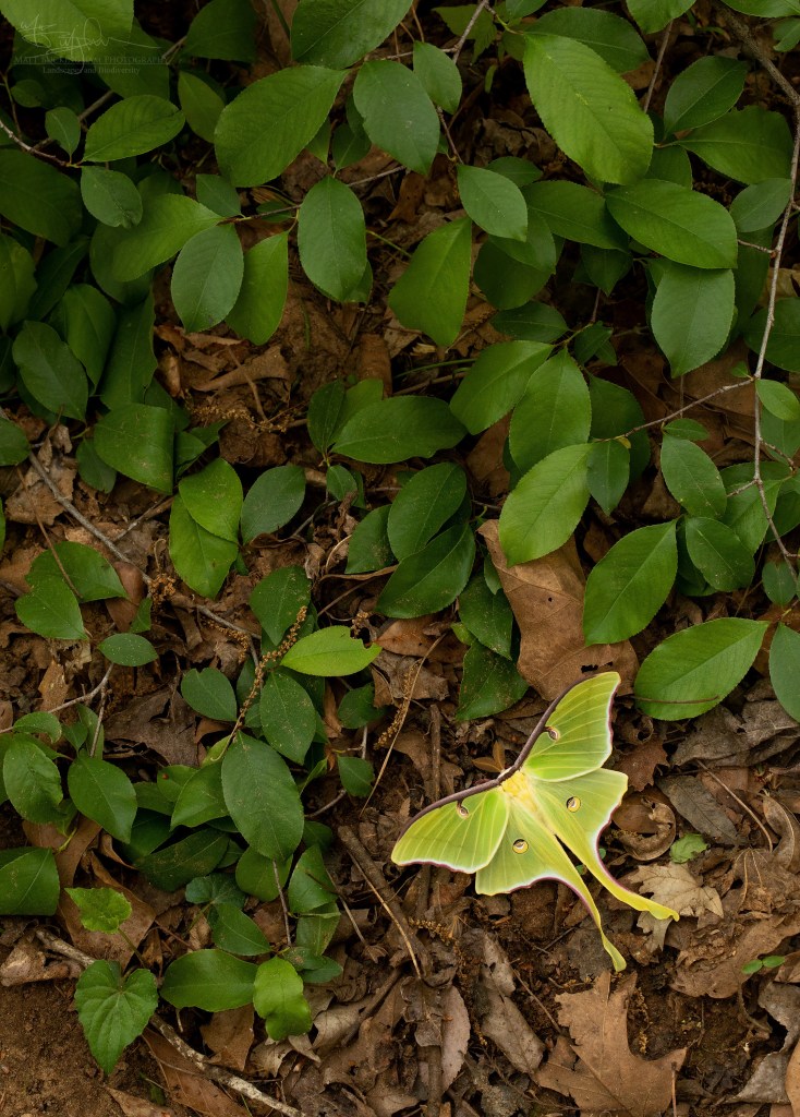 Most years we’re treated to a few luna moth (Actias luna) encounters during our spring wanderings. This year Caro spotted one on a small stick in a rich hardwood stream bottom. It was a flawless specimen, and we watched as it took its first flight. Graceful and awkward at the same time, it took a few broad flaps and ended up landing on the ground a few feet away, in the most spectacular of settings among the leaves of emerging violets and a downed black cherry branch.