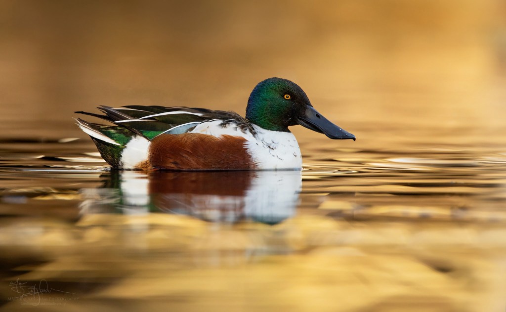 Also in January, Caro and I took a trip with James and Erin Childress to north-central Texas in pursuit of waterfowl. We were fortunate to find and photograph several species. My favorite image of the trip was this stunning Northern Shoveler (Anas clypeata) in water reflecting winter leaves illuminated by the rising sun.