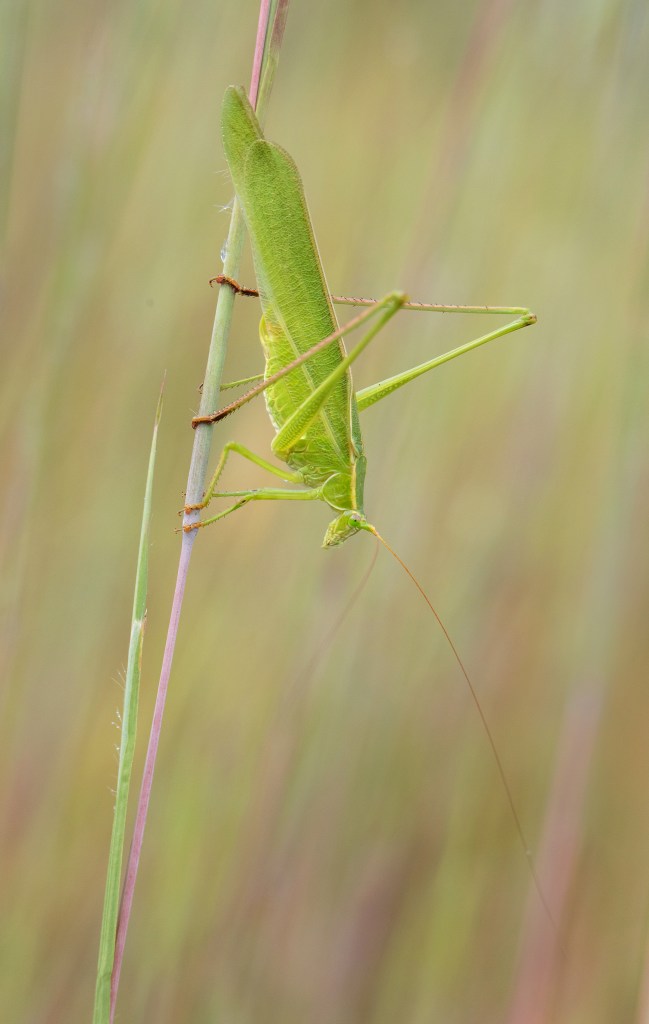 In late August I was invited by the U.S. Forest Service to visit some backland prairie remnants on the Sam Houston National Forest. The Forest Service has been working to restore these prairies and they were looking great. The little bluestem (Schizachyrium scoparium) was especially loverly and colorful, and made for a great perch and background for this katydid.