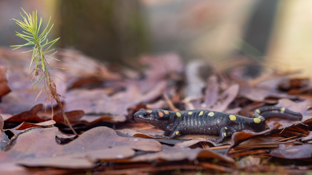 During the last days of 2024 east Texas was drenched by several powerful fronts that brought torrential rain. Normally this might trigger mass amphibian migrations this time of year, however I speculate that we haven’t seen enough cold days this winter, and as a result, the salamanders in particular, have not yet experienced their main breeding events. For that reason I felt particularly lucky to turn up this male spotted salamander (Ambystoma maculatum) close to its breeding pond. The spotted salamander is one of my all time favorite animals, and I never tire of seeing them. I think they’re one of the most beautiful organisms around and feel lucky that I can find them close to home.