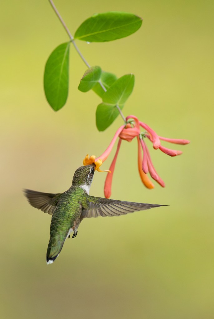 One evening in late June while pulling into my driveway after work I noticed a Ruby-throated Hummingbird (Archilochus colubris) feeding on the native coral honeysuckle (Lonicera sempervirens) that covers the fence along the side of the house. I quickly ran inside, said hello to my wife and son, grabbed my camera and ran back out to see if I could make an image. Luckily the bird was still there and after a few minutes visited the one bloom that had a clear and distant background. I was really thrilled with the result and this turned out to be one of my very favorite images of the year.