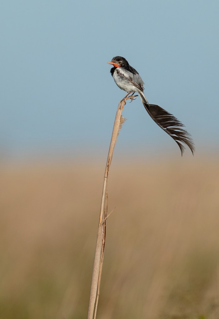 The Strange-tailed Tyrant inhabits high quality grasslands where males perch on the highest perches to survey their territory. They are found in northern Argentina, Paraguay, Uruguay, and Brazil. Their range has decreased significantly, and today they are known from relatively few, mostly isolated populations Iberá is largely regarded as the best place to observe them, and we found them to be quite common in appropriate habitat. On our last morning in the area, as we drove the road the cut through the park, we spotted several males, though most were at a great distance. Finally I spotted one close the road and shouted “STOP!”. My father-in-law slammed on the breaks and we came to a halt in the perfect position to capture this male perched high on his grass look out tower.
